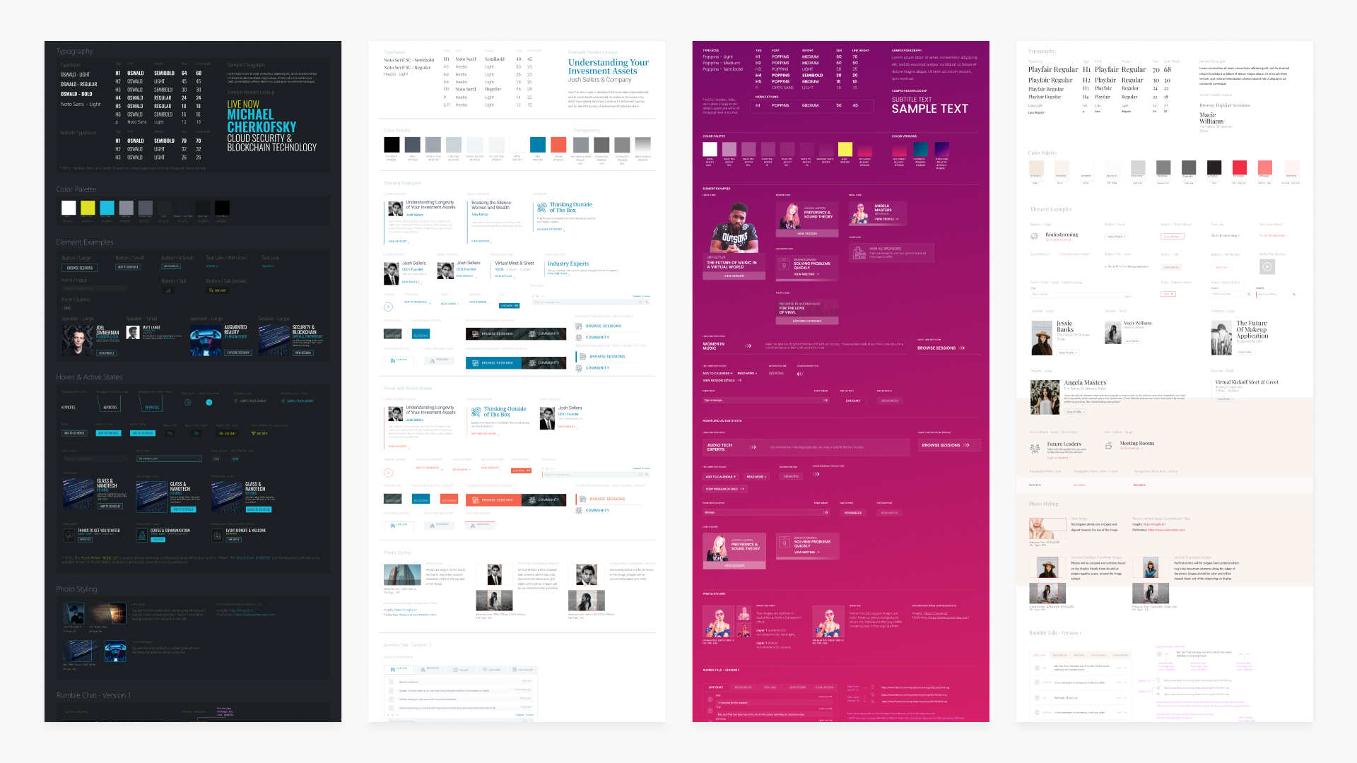 While it may seem that having every asset and component outlined with their rules and uses makes for a rigid and stagnant system, it’s quite the opposite. The system thrives on its agility and ability to evolve. While some common traits may be static, others have flexibility built into them. This flexibility allows fresh ideas to bring innovation to a product while still maintaining consistency with the visual language system. We utilized this flexibility to create themes within the platform so events can have a more custom look and feel, but still feel like Hubb.